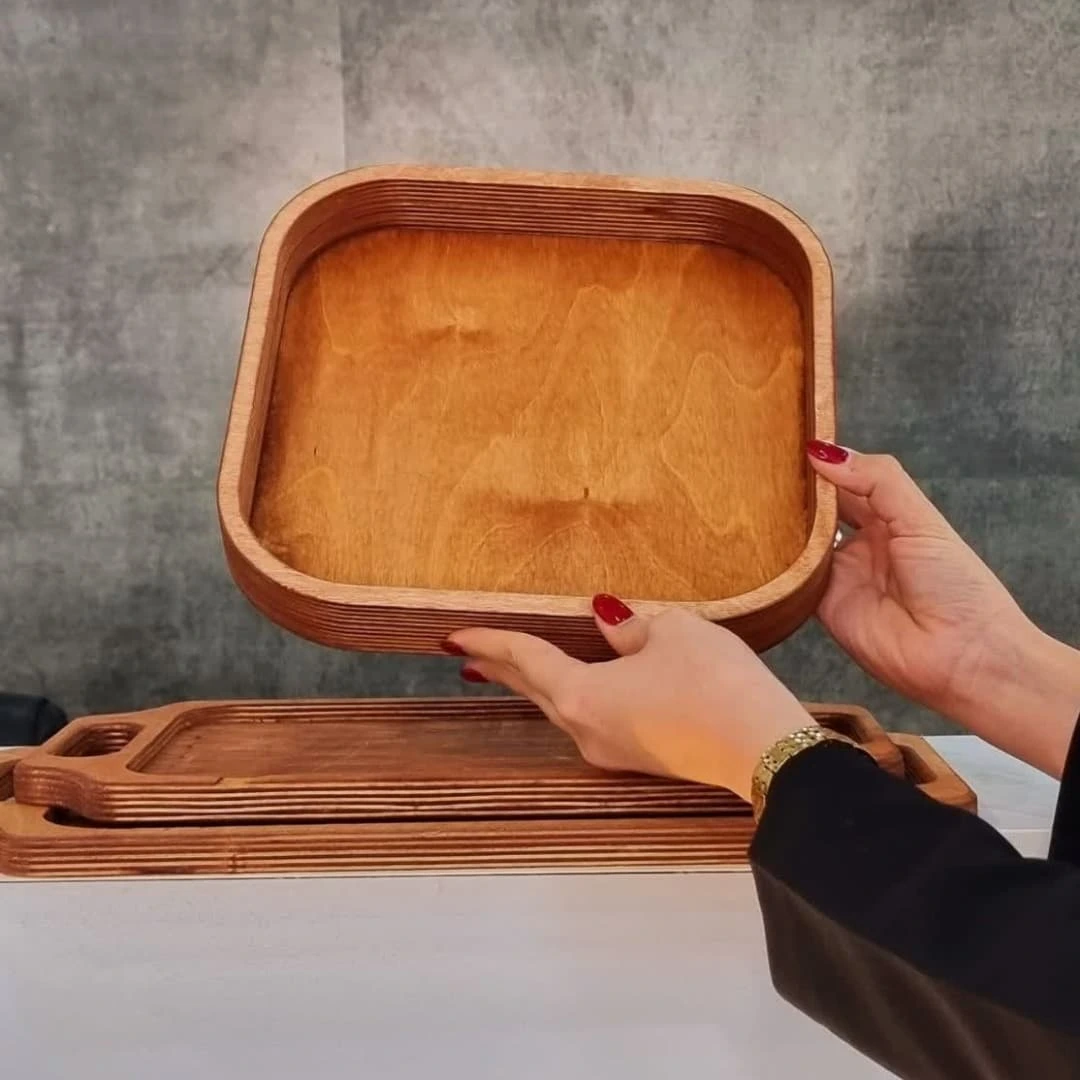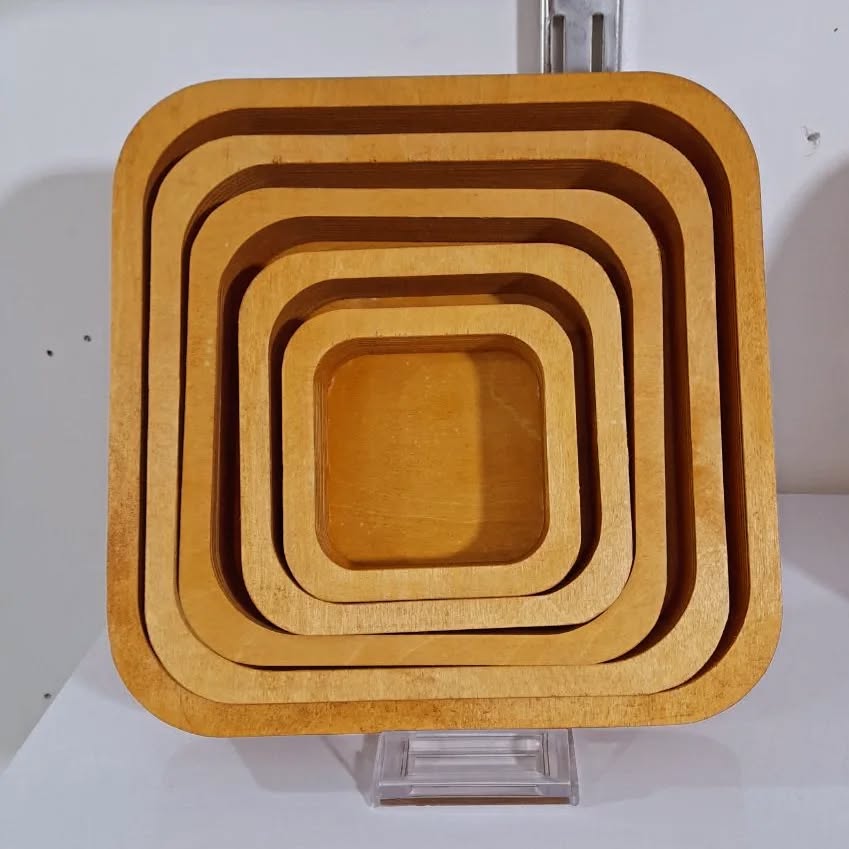 سینی پذیرایی چوبی 5تیکه مربع⚜️جنس چوب با کیفیت وضد آب⚜️شیک پیروز⚜️مناسب برای سرو چای .میوه.شیرینی.تنقلات وانواع خوراکی ها⚜️شیک پذیرایی کنید😉⚜️