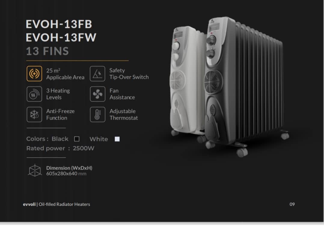 شوفاژ برقی ایوولی مدل EVOH-13MFW ۱۳ پره فن دار | خرید از NafasHome