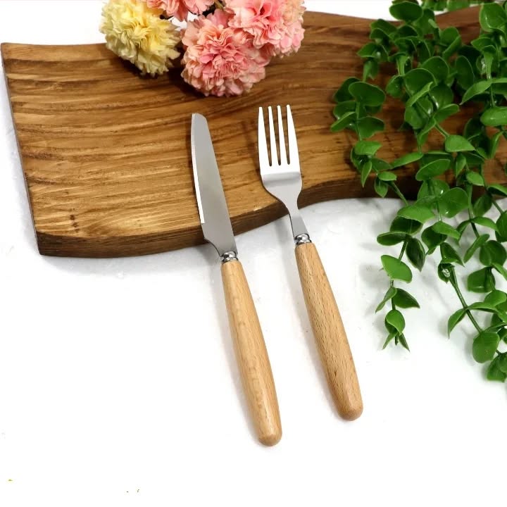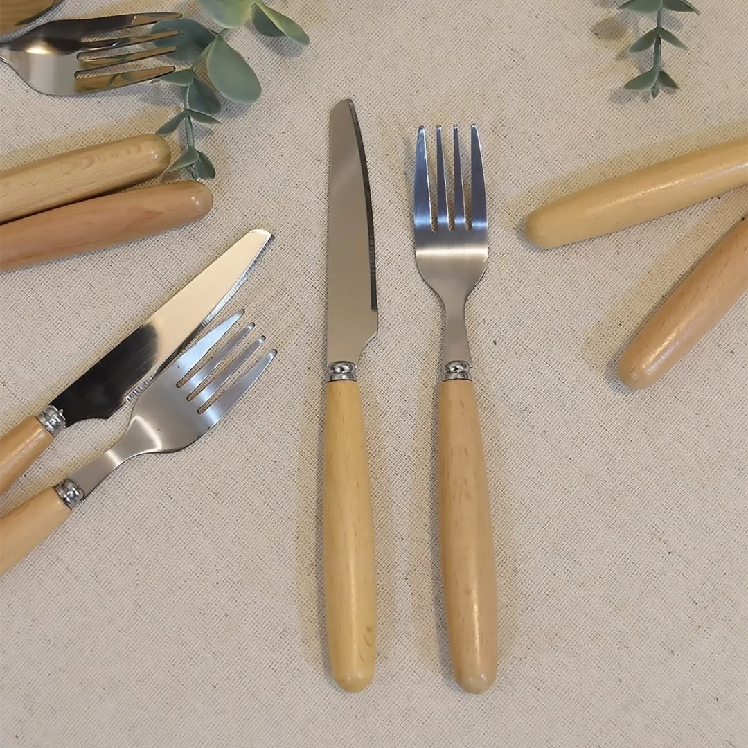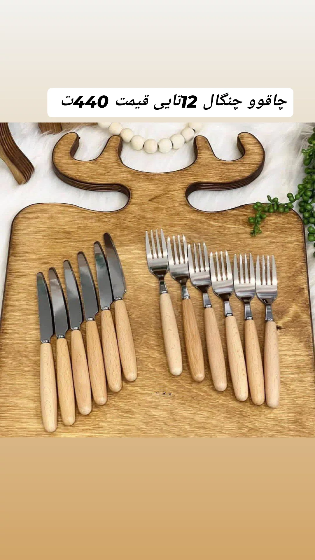 6عدد چنگال، 6عدد چاقو دسته بامبو کیفیت عالی یه کار شیک وکاربردی