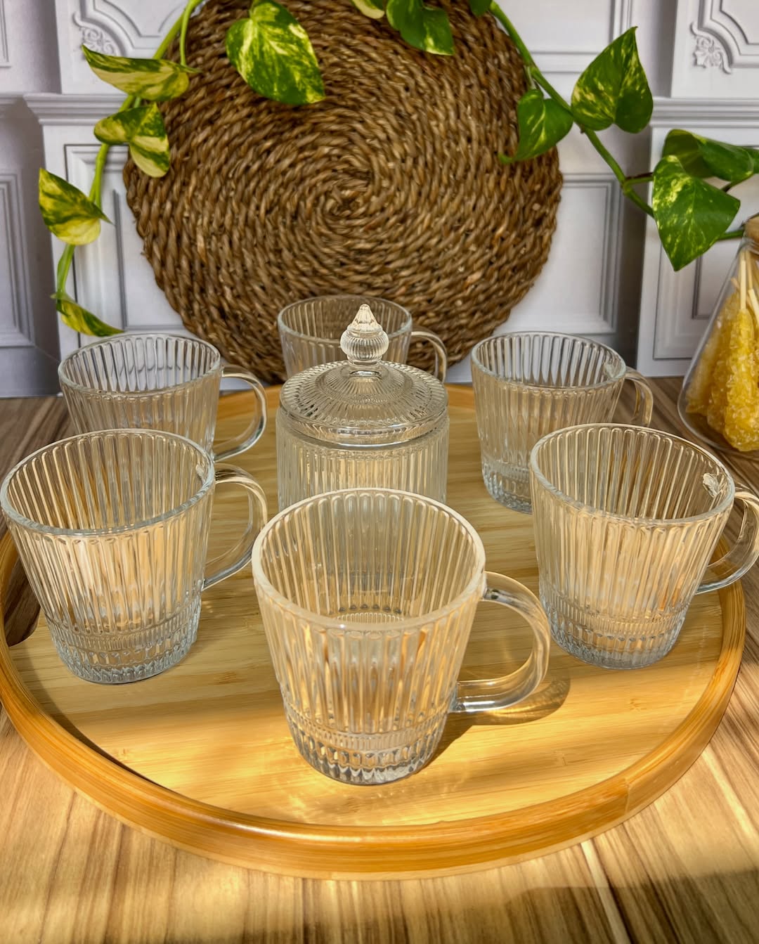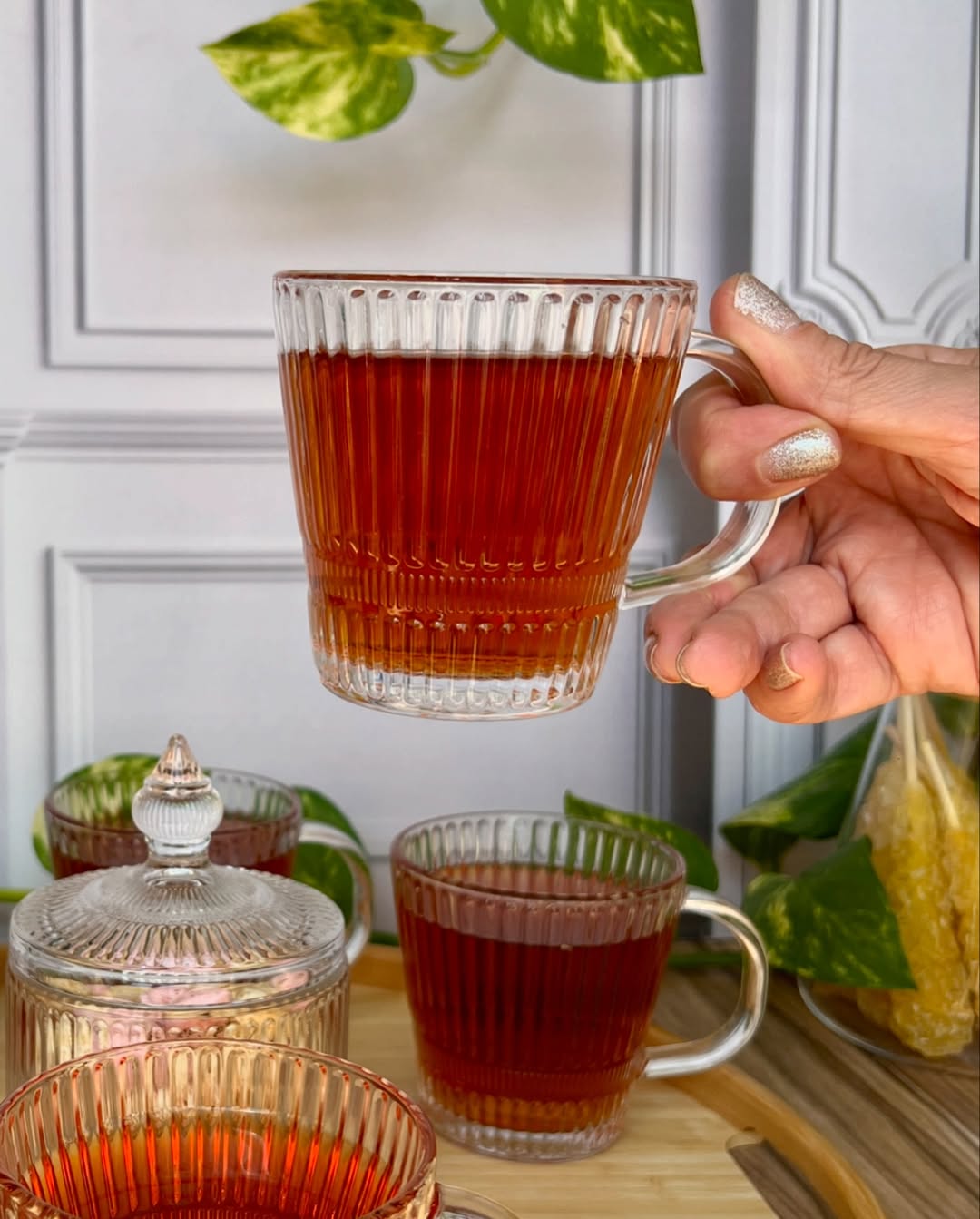 لیوان چای خوری، برند دلی محاله عاشق این ست چایخوری نشی😍مخصوص صبحانه و چایی لیوانی خورا🥰لیوان دسته دار خطدار از برند دلی گلس حجم ۲۷۰ میل ارتفاع ۸ سانت دست ۶ عددی