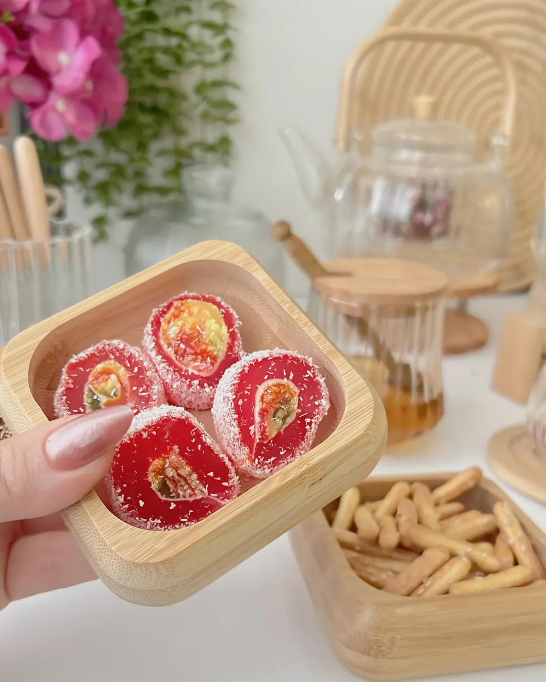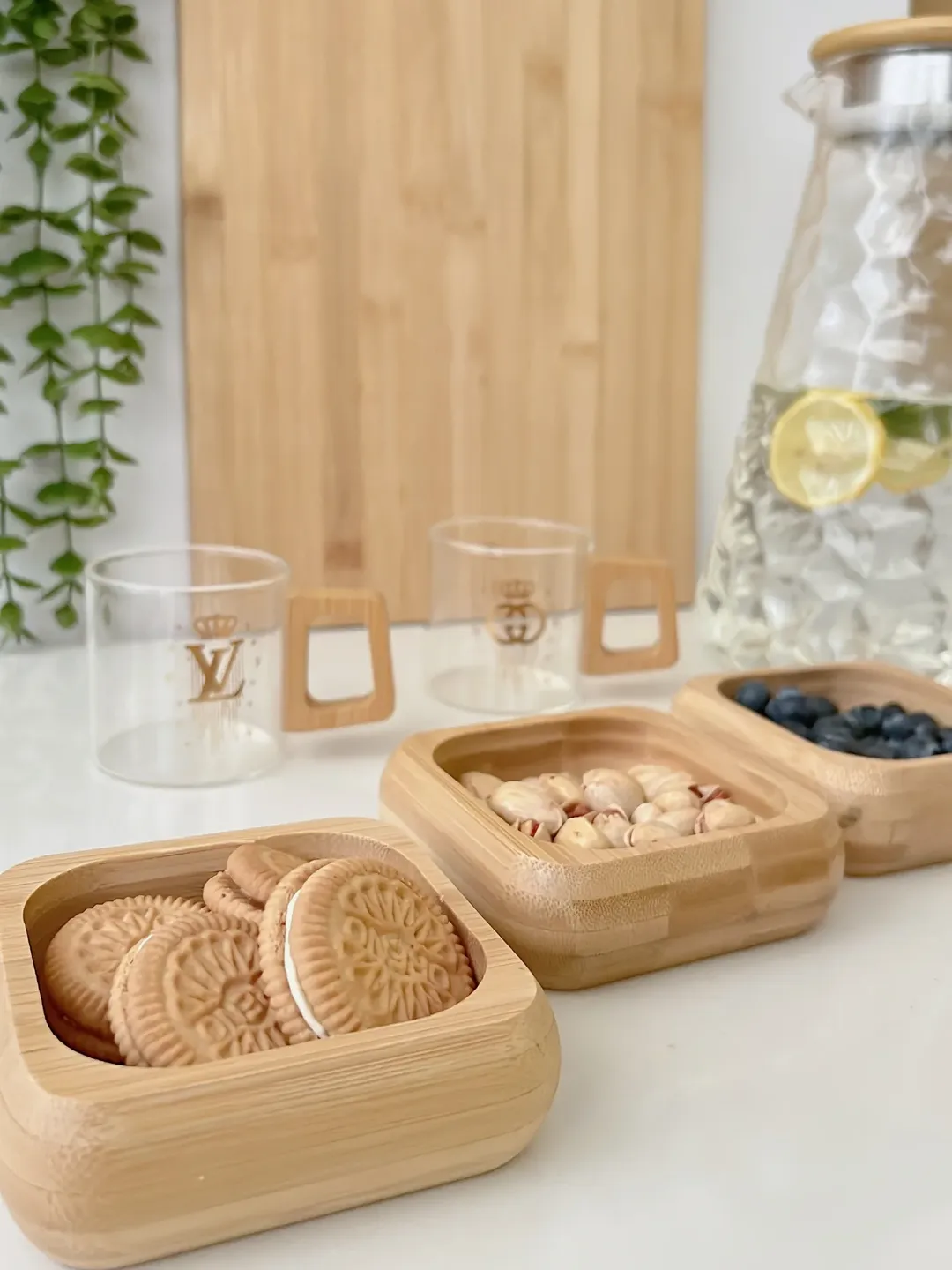 پیاله مربعی بامبو وارداتی قابل شستشو و سایز ۹/۵ *۹/۵عمق۲/۵ مخصوص تنقلات، مربا، آجیل،